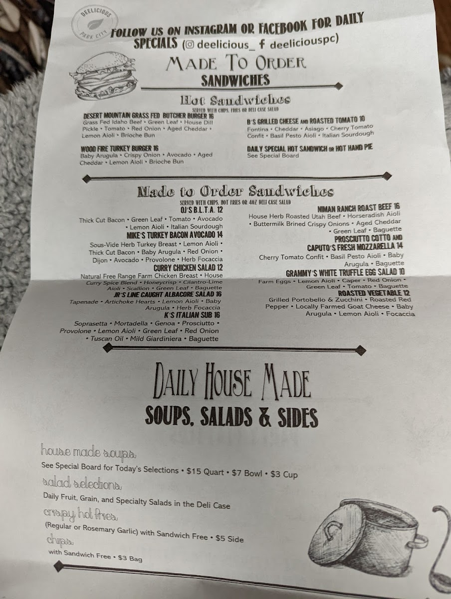 DeeLicious Park City Menu